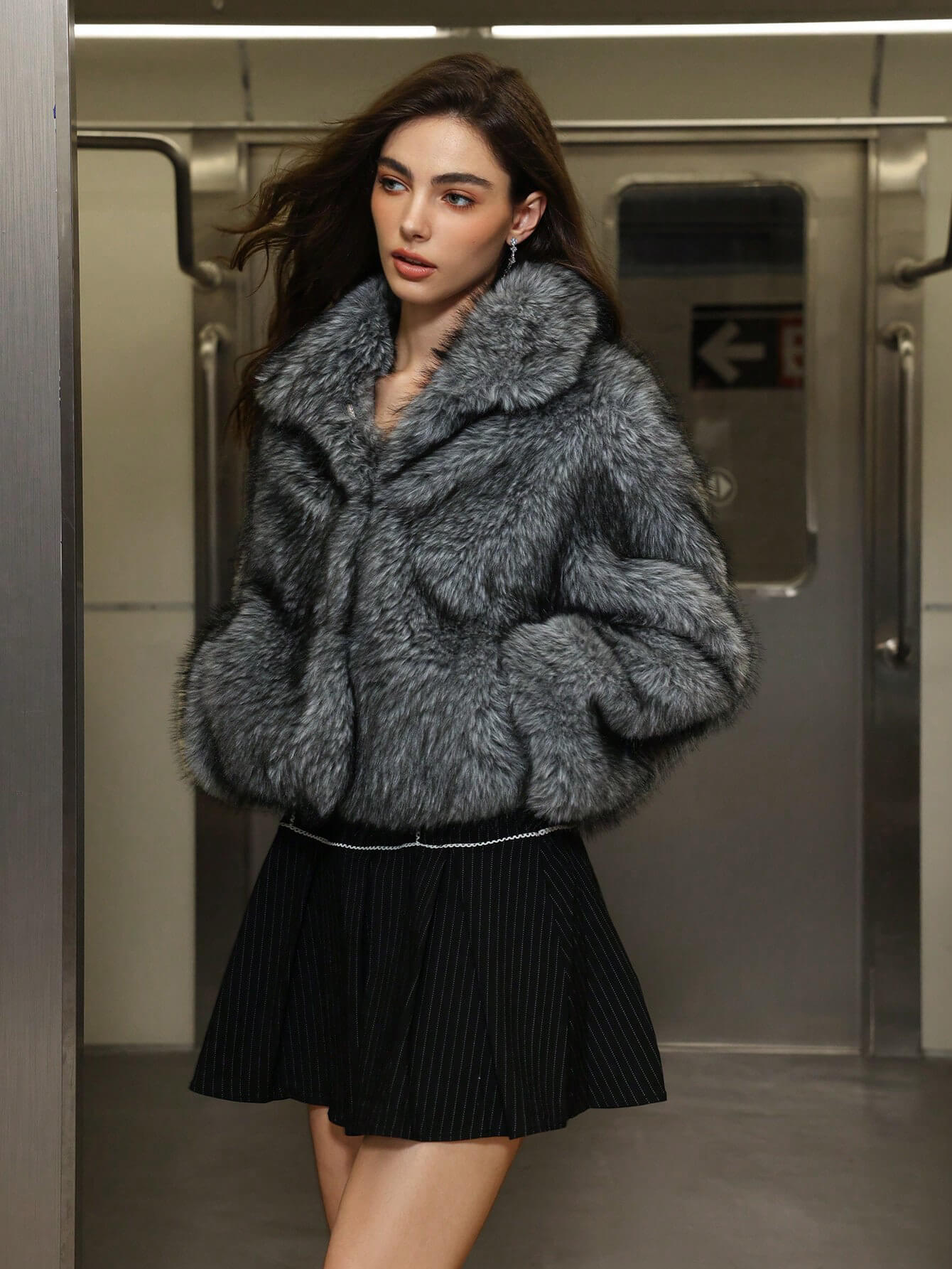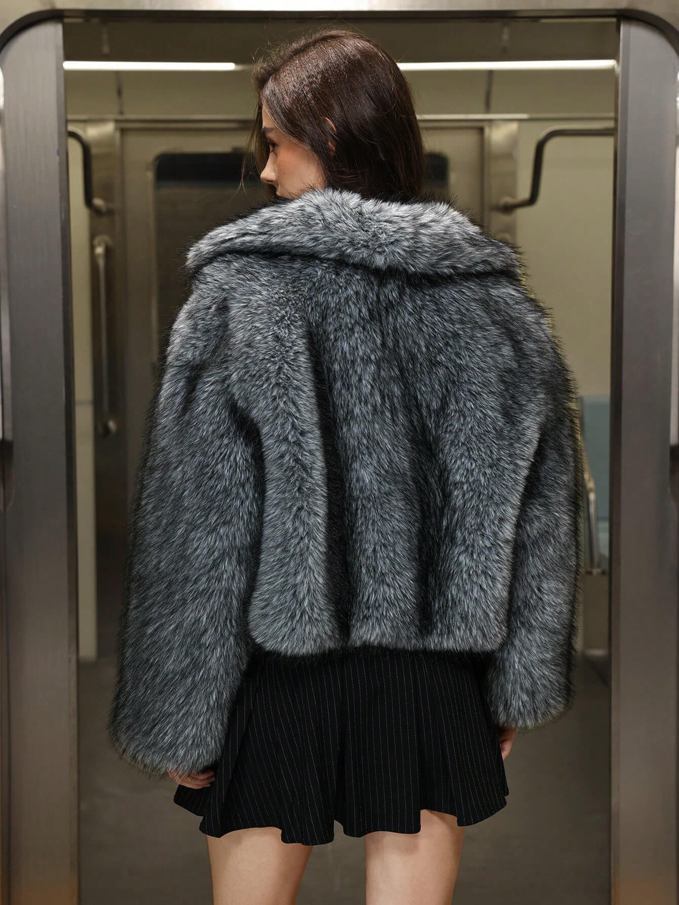 Este cálido abrigo de piel sintética presenta una textura suave y voluminosa que ofrece un aislamiento excepcional, manteniendo una silueta refinada y moderna. El cuello de solapa ancha le aporta elegancia, y el suave tono gris realza su aspecto lujoso. Diseñado para la comodidad y el estilo, combina a la perfección con faldas o pantalones, lo que lo hace ideal para salidas invernales, uso diario o noches urbanas. Una combinación perfecta de calidez, estilo y versatilidad para la temporada de frío.